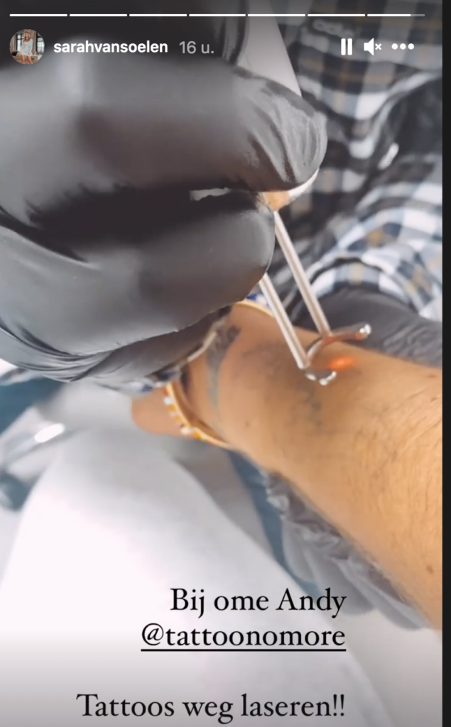 Sarah de vriendin van Andre Hazes deelde onderstaande foto op haar Instagram account. En daarop zien we dat Andre Hazes een tattoo laat verwijderen op zijn arm.